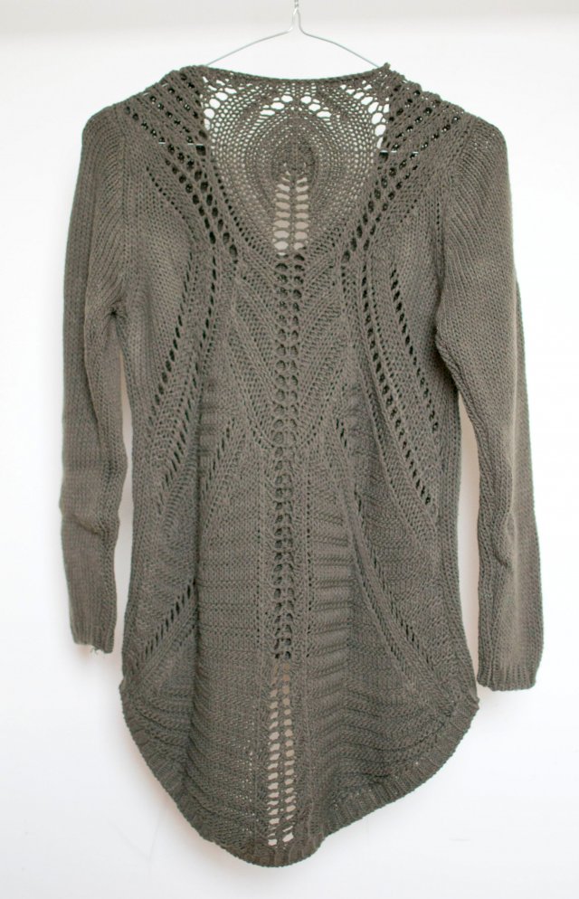 Bardzo fajny sweter, przód krótszy, tył dłuższy.