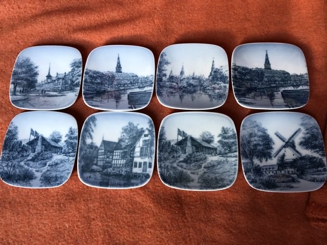 Kolekcjonerski niewielki talerzyk - obrazek na porcelanie . Porcelana mocna, solidna jakościowa . Od spodu dziurki do zawieszenia o jakości zaświadczadczające. Ciekawa forma , niuanse niebieskości i satynowo błyszczące wykończenie . Sygnatura - B&G COPENHAGEN MADE IN DENMARK - DEN GAMLE BY AARHUS 1701/5708 i podpis autora . Góra 8 x 8 przekątna 9,5 dół 5 x 5 przekątna 6,5 wys. 1 cm Stsn zachowania bardzo dobry . Nadaje się na ciekawą dekorację i oryginalny prezent