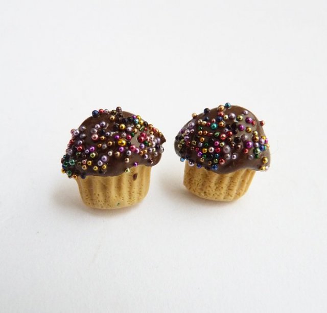 Piękne, małe kolczyki babeczki wykonane z masy termoutwardzalnej. Babeczki mają 1,1cm wysokości i 1,2cm szerokości. Sztyfty i baranki są metalowe. Kolczyki pięknie prezentują się na uszach. Wysyłam ozdobnie zapakowane