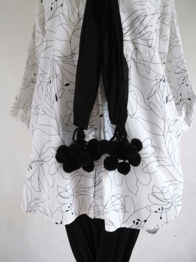 cienki czarny szaliczek zakończony kiścią bąbelków.