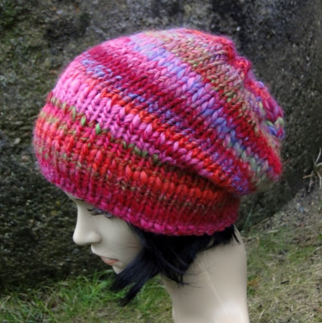 Bardzo ciepła, gruba, mięsista ( wykonana niezbyt luźno, aby nie hulał po niej wiatr :) ) i przyjemna w dotyku czapa wykonana ręcznie na drutach z rewelacyjnej włóczki prod. hiszpańskiej ( 53% virgin wool, 47% akryl), w bajecznych kolorach. Czapka jest dwustronna i bezszwowa, dzięki czemu można dowolnie układać kolory przy twarzy. Rozmiar czapki : obwód od 54 do 56 cm, wysokość ok. 28 cm. Bardzo twarzowa. Dużo ładniejsza, niż na zdjęciach. Polecam.