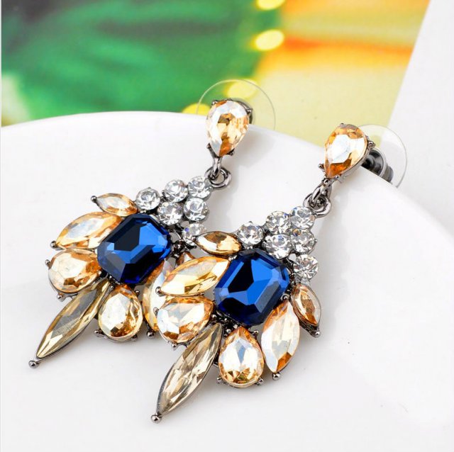 Kryształki w kolorach blado żółtym, granatowym i białym.