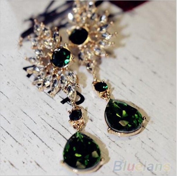 Cudne kolczyki w złotym kolorze. Wysadzane kolorowymi kryształkami.