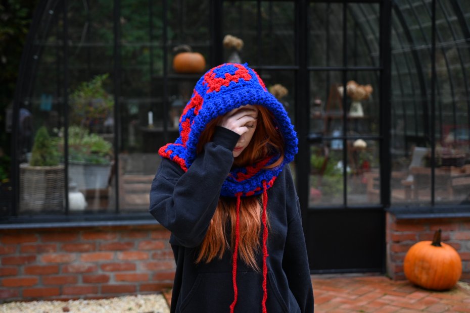 Ręcznie szydełkowana balaclava z bawełny – ciepła, miękka i przyjemna w dotyku. ????