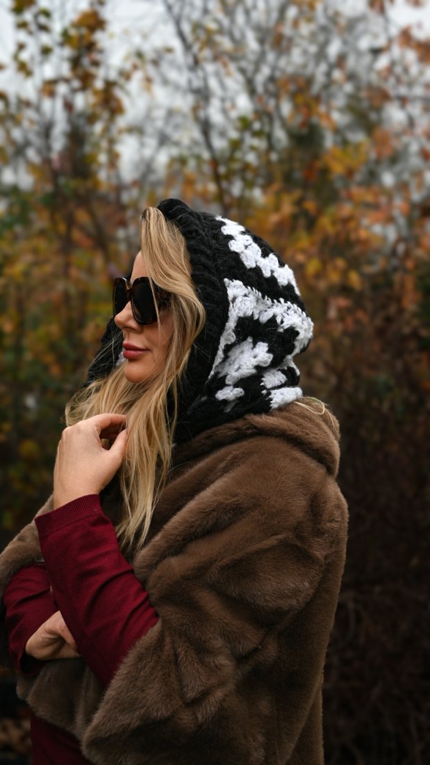Ta unikalna, ręcznie szydełkowana balaclava to prawdziwe dzieło rękodzieła.