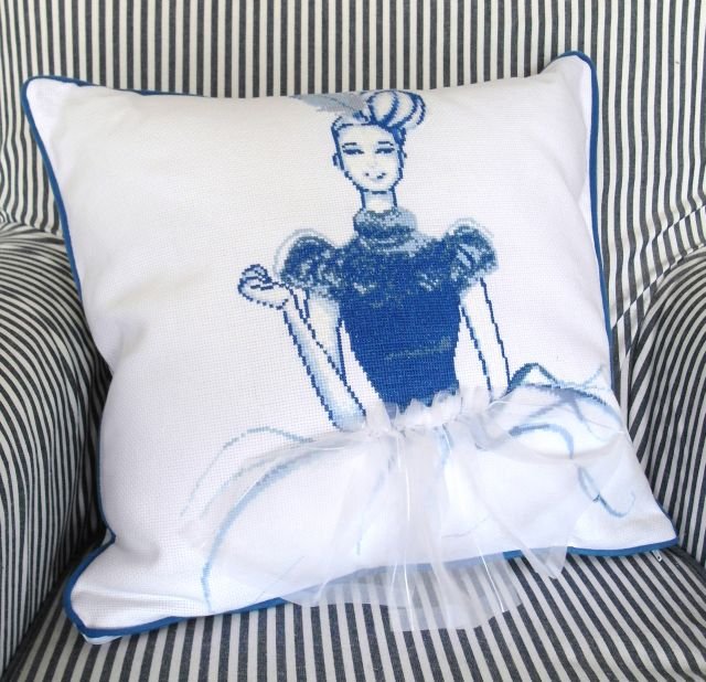 Biała z niebieskim obszyciem i piękną baletnicą w tiulowej spódnicy. Wkład antyalergiczny, poszewka na suwak.
