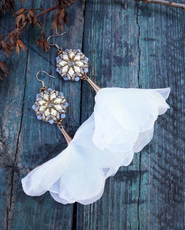 Tagi: #ażurowe kolczyki, #beżowe kolczyki, #oryginalne kolczyki wiszące, #z chwostem
