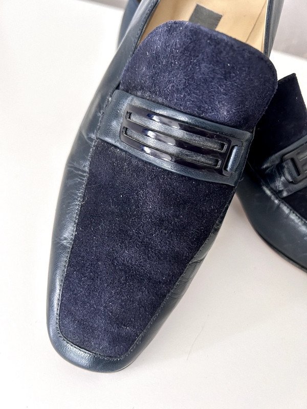 Buty mokasyny, loafersy renomowanej firmy premium Bally w rozmiarze 39 (długość wkładki 25 cm). Wykonane w 100 % ze miękkiej skóry nyaturalnej - łącznie z podeszwą. Piękny granatowy kolor, klasyczny model. W bardzo dobrym stanie, chodzone tylko raz po domu. Niestety nie dla mojej stopy. Koszt zakupu to około 3 000 tys. zł. Szafa kapsułowa, old money style. Polecam