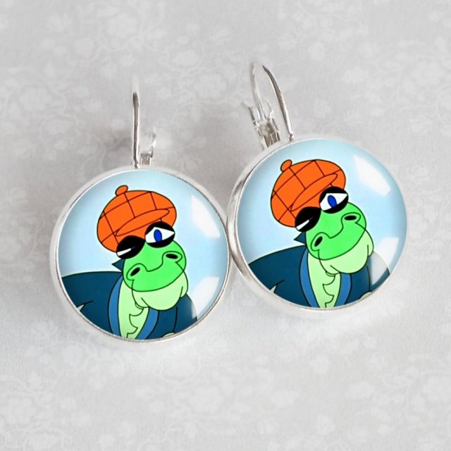 Kolczyki z unikatową grafiką, zatopioną pod wypukłym szkiełkiem, w posrebrzanej oprawie. Grafika jest najwyższej jakości, wyraźna i nasycona. Bigle posrebrzane, zapinane, sztywno przymocowane do oczka, hipoalergiczne- nie zawierają niklu i ołowiu. Kaboszony szklane z grafiką są unikatowe, wykonane ręcznie według mojego projektu z najwyższą starannością, dlatego biżuteria ta jest jedyna w swoim rodzaju i niespotykana.