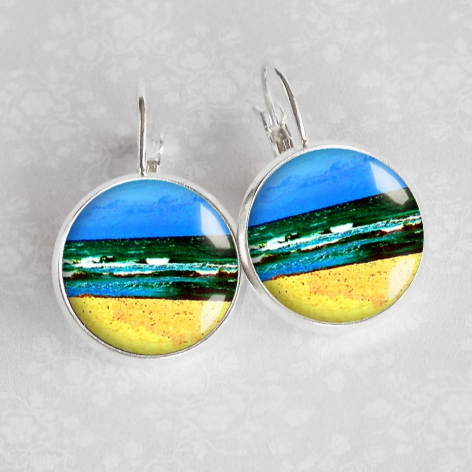 Kolczyki z unikatową grafiką, zatopioną pod wypukłym szkiełkiem, w posrebrzanej oprawie. Grafika jest najwyższej jakości, wyraźna i nasycona. Bigle posrebrzane, zapinane, sztywno przymocowane do oczka, hipoalergiczne- nie zawierają niklu i ołowiu. Kaboszony szklane z grafiką są unikatowe, wykonane ręcznie według mojego projektu z najwyższą starannością, dlatego biżuteria ta jest jedyna w swoim rodzaju i niespotykana.