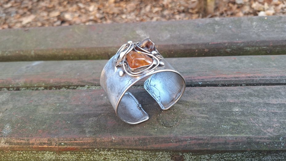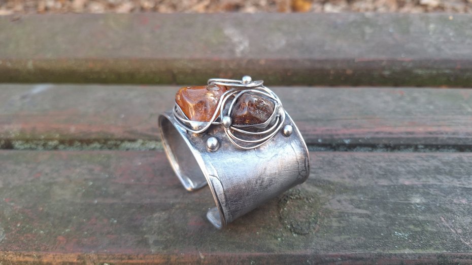 Tagi: #bransoletka sztywna, #bransoletka z bursztynem, #brązowa bransoletka, #regulowana bransoletka