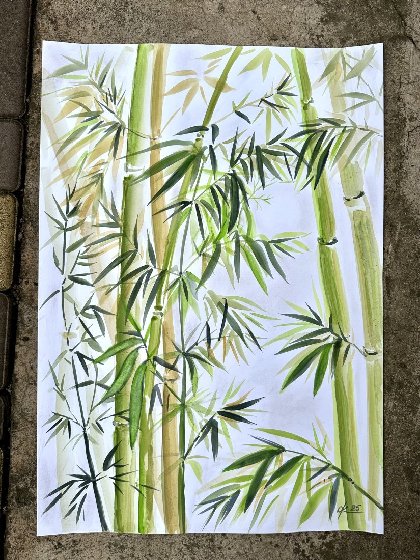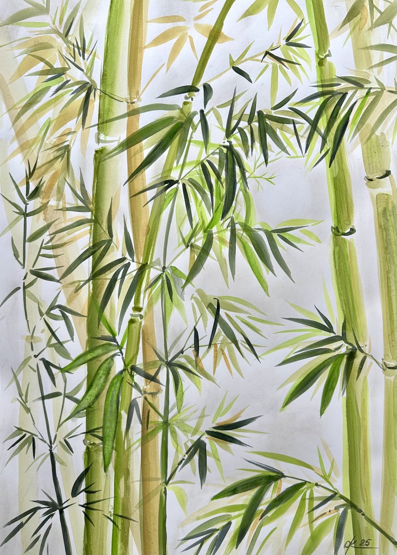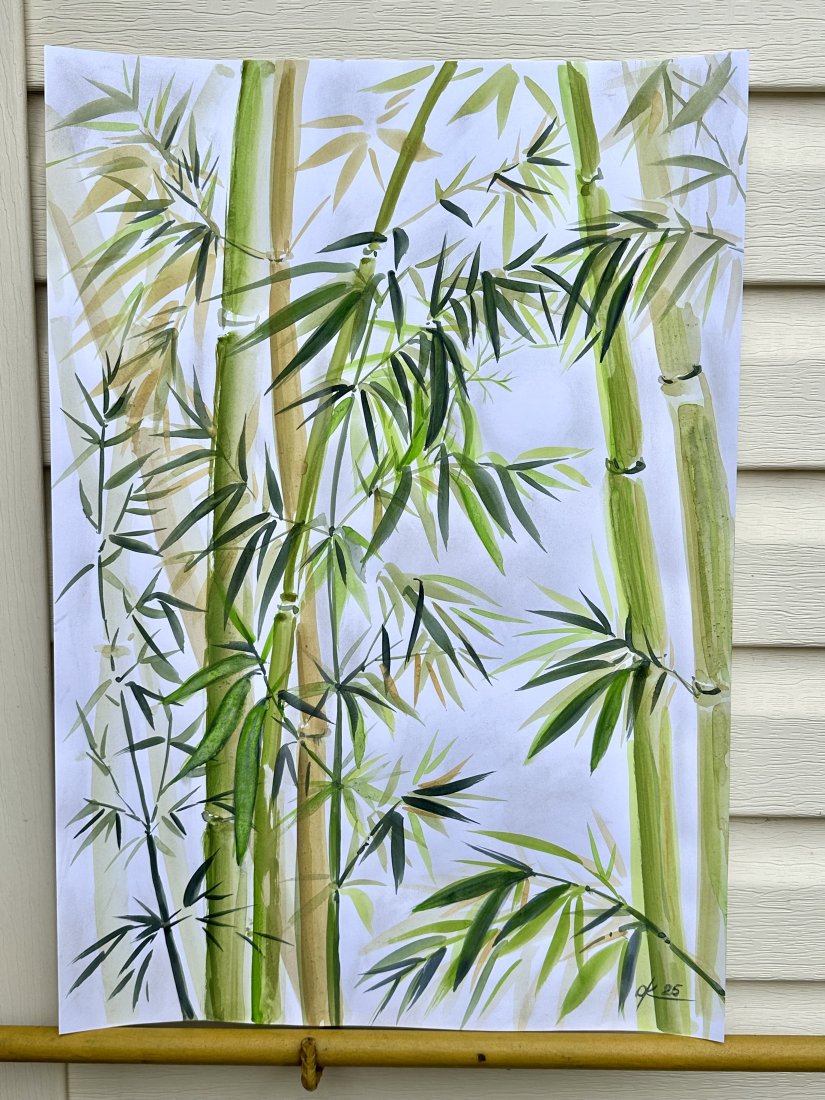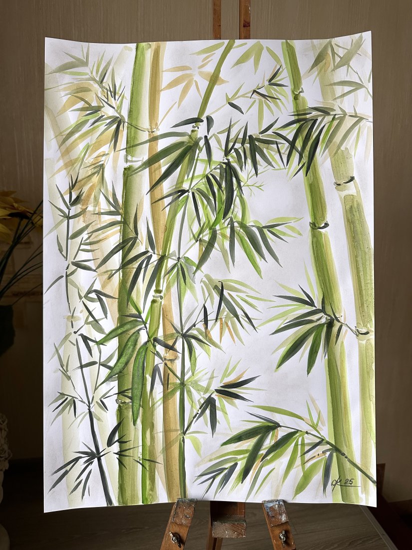 Bambus, japońskie malarstwo sumi-e. Original Akwarela A4 60/42cm ręcznie malowana.