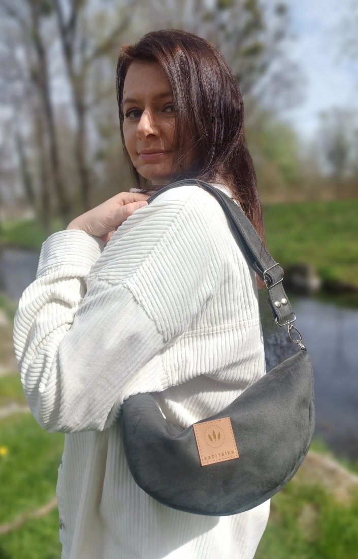 Torebka nerka wykonana z grubego zamszu premium o wyglądzie naturalnej zamszowej skóry.