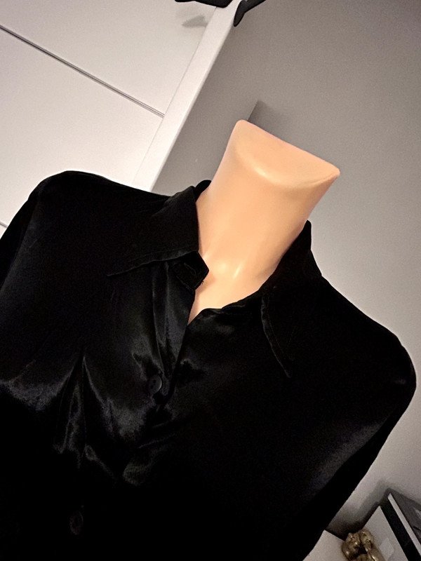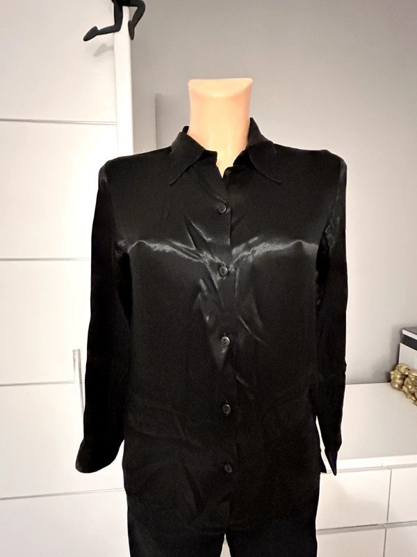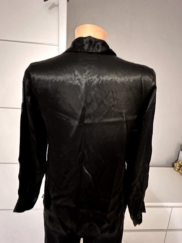 Czarna koszula marki bandanas, rozmiar z metki to S 36. Ma świetny skład, bo jest wykonana w 60% wiskozy i 40% z acetatu. Jest satynowa, zapinana na guziki. Będzie świetna również do pracy w biurze czy na spotkania.