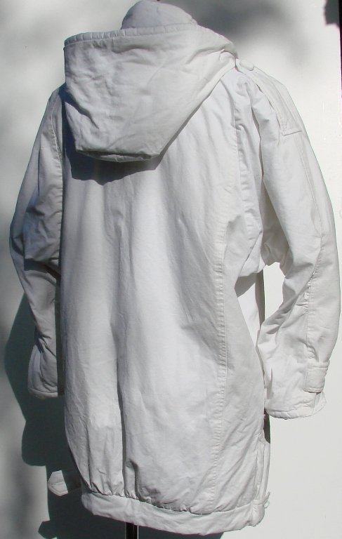 Biała, solidnie ocieplona kurtka, z odpinanym kapturem. Stan idealny. Jej walor przy białym kolorze to fakt, że mozna ją prać w pralce na lekkim programie ( właśnie jest po praniu:)