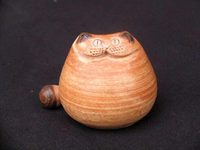 Ceramiczna, w całości z miłością ręcznie wykonana figurka kociej Osobowości... najedzonej, wyluzowanej, życie garściami bez oporów chwytającej :) Matowo-satynowe wykończenie i precyzyjne detale postaci. 7,5 x 5,5 x 4,5 cm. Stan zachowania bardzo dobry. Przyjemnie szlachetna w dotyku :)