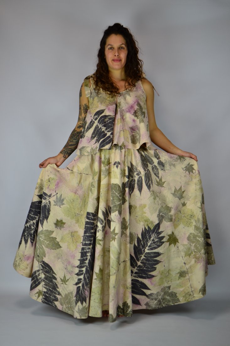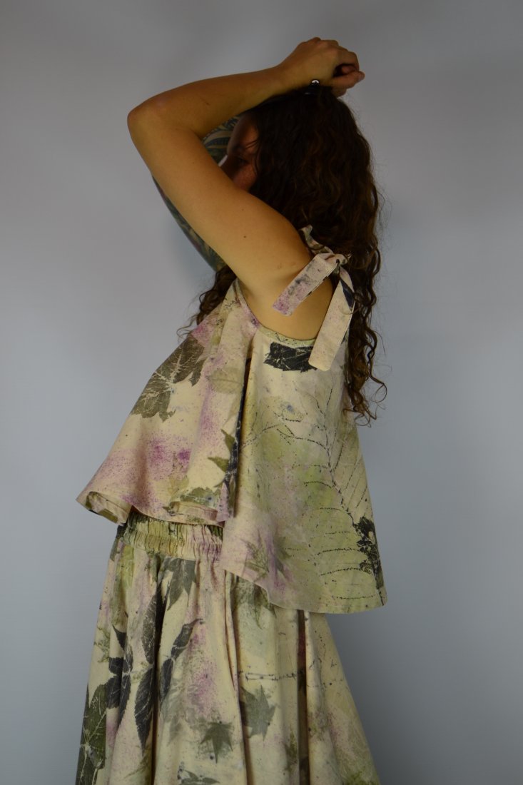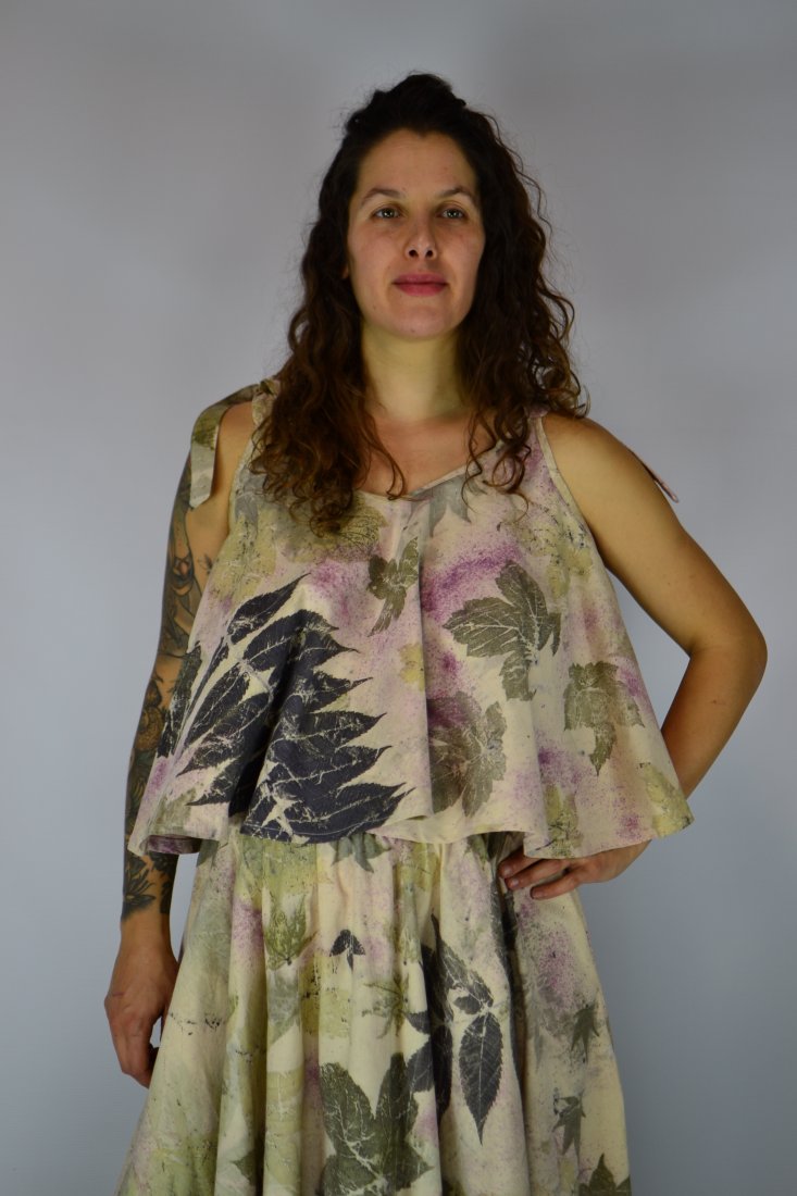 Bluzka z pełnego koła barwiona naturalnie techniką ecoprint