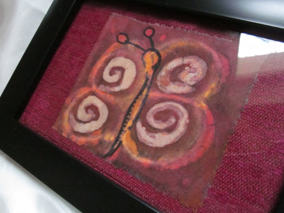 Batik, niewielki obrazek. Ręczna praca. Passpartou z materiały dobrze dobrane kolorem do obrazka. Stonowane, jesienbe barwy, oryginalna, Ręczna praca. Ramka w wykończeniu satynowym. Haczyk do powieszenia i stópka do postawienia Ramka 18,5 x 13,5 x trochę ponad 1 cm szybka widoczna 14,5 x 9,5 sam batik 9,5 x 8 Stan zachowania bardzo dobry. Ramka nosi minimalne ślady przekładania. Nadaje się na ciekawy prezent;)
