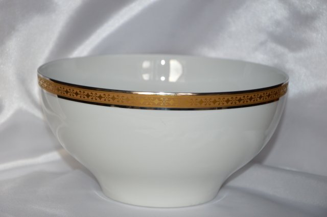Przepiękna duża misa - salaterka , błyszcząca biała porcelana, obrzeże zdobione lamówką w kolorze platyny i złota , sygnowana ARZBERG BAVARIA.