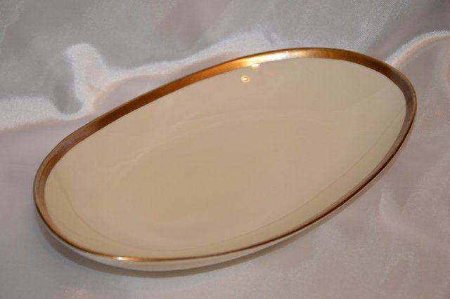 Urocza patera - bogato złocone obrzeże, porcelana w kolorze ekri, sygnowana BAVARIA ALKA.
