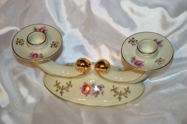Przepiękny elegancki świecznik , porcelana w kolorze ecri, bogato złocony i zdobiony motywami kwiatowymi , sygnowany
