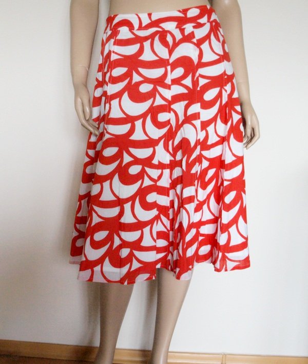 letnia spódnica marki monsoon. Materiał 100% cienka bawełna. pod spodem bawełniana podszewka. uszyta z rozszerzających się klinów,stębnowanych na zewnątrz. zamek z boku. stan bardzo dobry. Rozmiar z metki 42, Podaję wymiary mierzone na płasko;