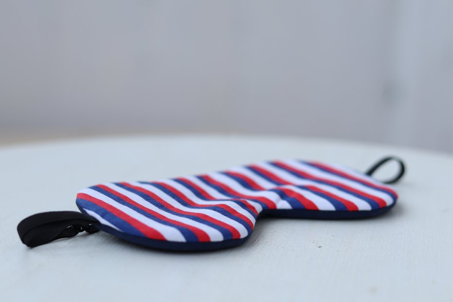 Opaska do spania i relaksu z regulowaną gumą. Przeznaczona dla podróżujących oraz tych, którzy muszą spać przy świetle dziennym.