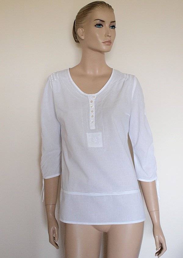 bawełniana bluzeczka amerykańskiej marki antilia femme. ozdobiona delikatnym haftem i mereżką. Materiał 100% cienka bawełna. stan bardzo dobry. rozmiar z metki M. Podaję wymiary mierzone na płasko;