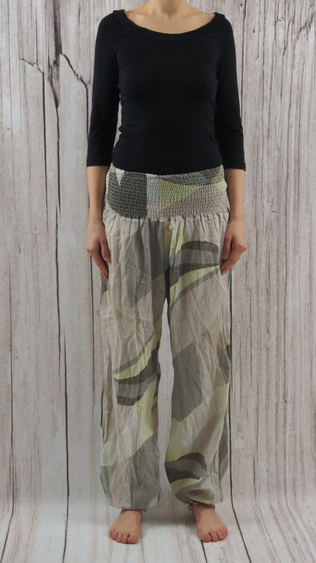 Letnie bawełniane spodnie typu pumpy. W stonowanych kolorach.