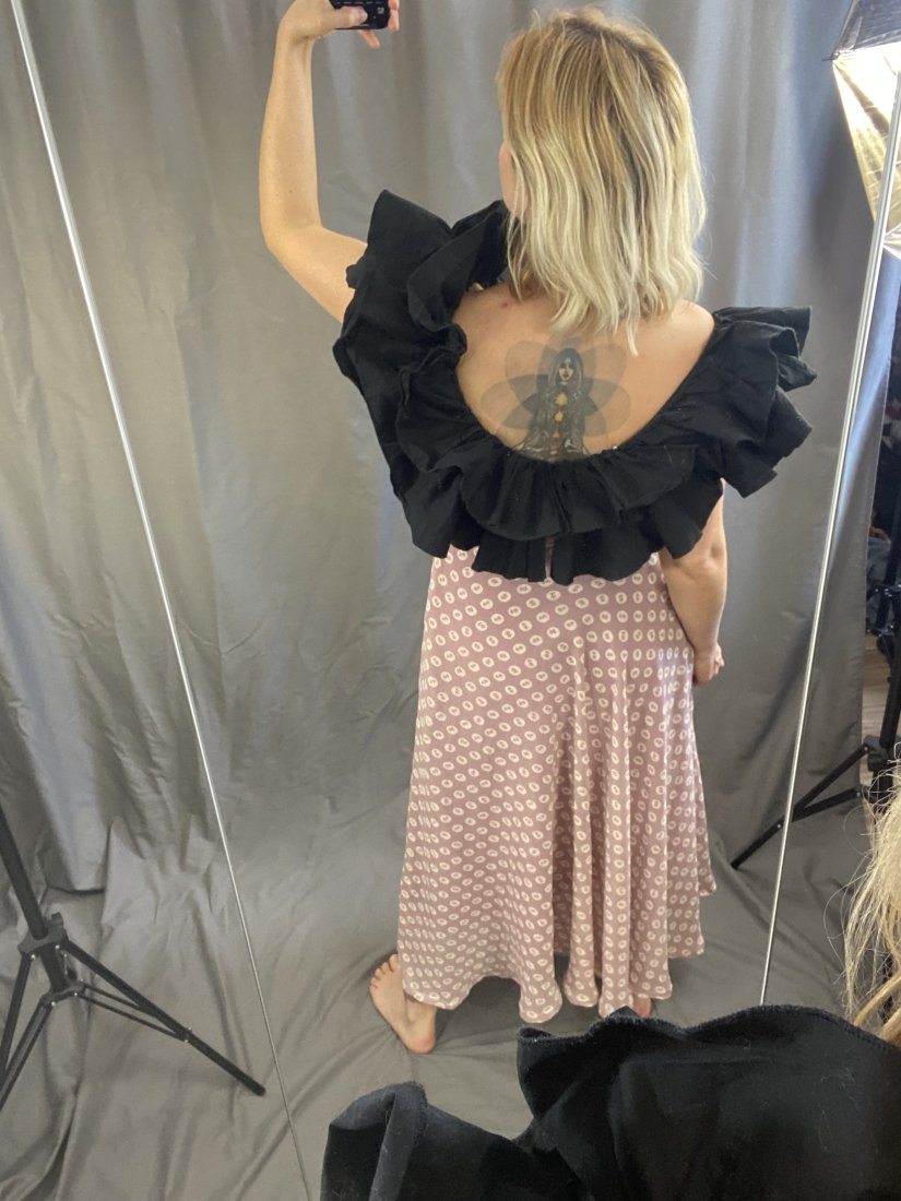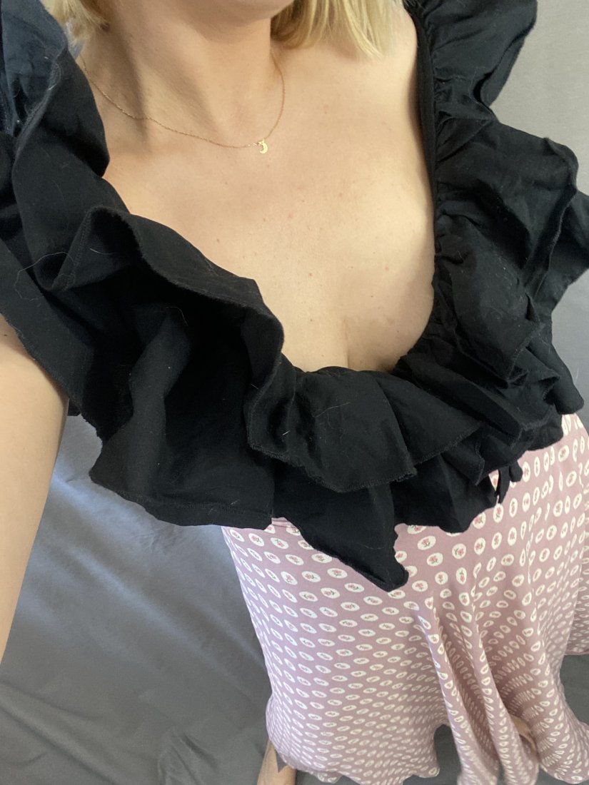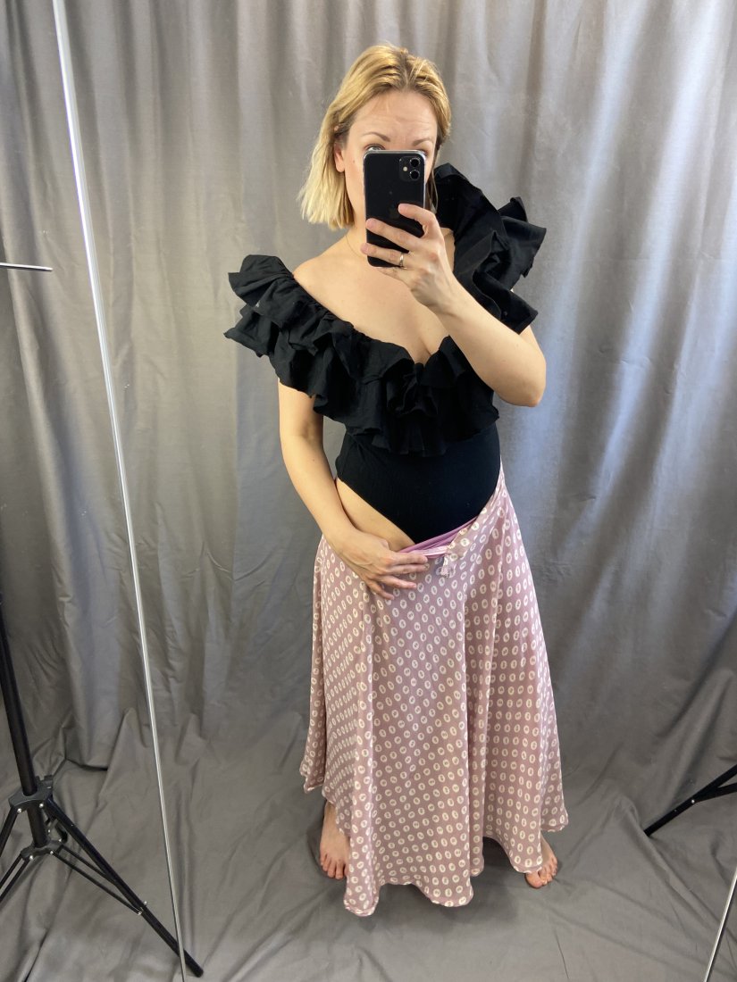 Bawełniane boskie body. Body w body elastyczne, prążkowane podłużnie ???? + falbany z bawełny nieelastycznej. Wspaniałe! Można nosić na ramionach, lub poopuszczać niżej.