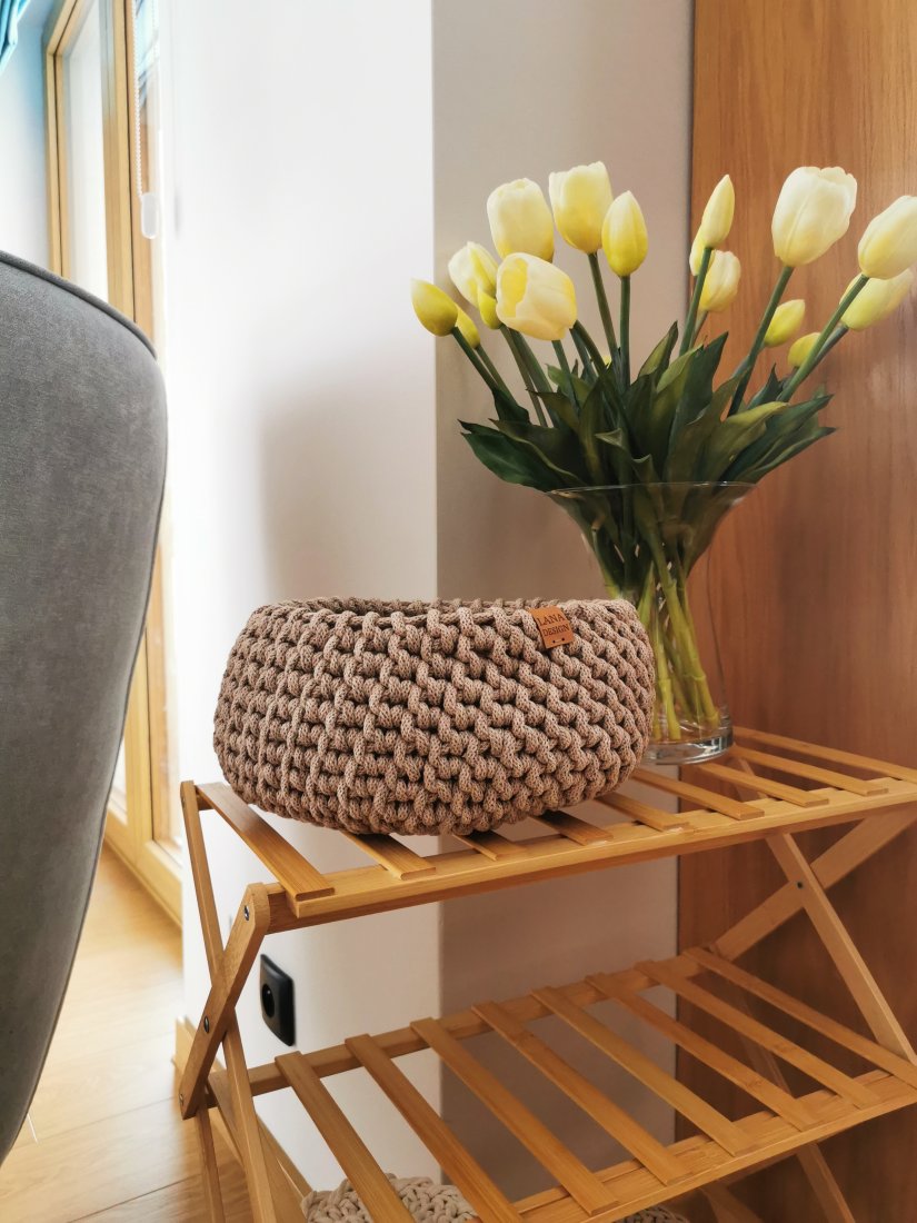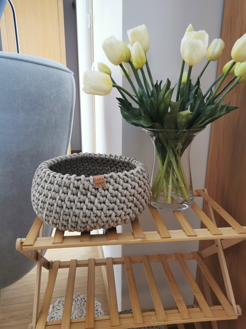 Dzięki swojej prostej formie kosz pięknie wpisuje się w różne style wnętrzarskie od rustykalnego, boho poprzez skandynawski do minimalistycznego.