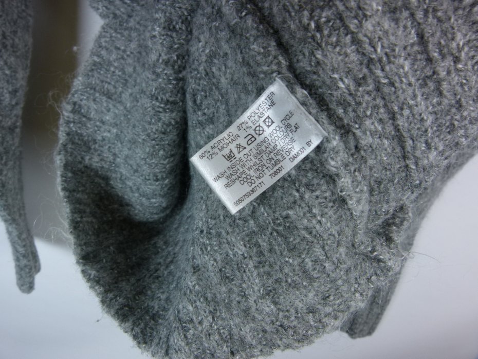 60% akryl, 27% poliester , 12% moher , 1% elastan