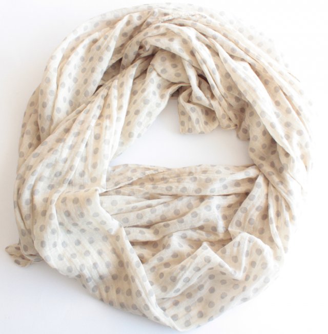 Miękki, duży szal w groszki skandynawskiej marki Beck Sondergaard. Wykonany z bawełny.