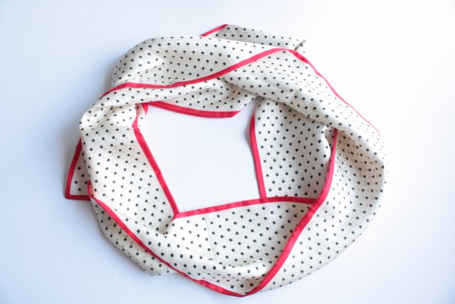 Piękny podwójnie zszywany szal w czterolistne, drobniutkie koniczynki na tle ecru, wykonany z naturalnego jedwabiu. Luksusowa marka Becksondergaard.
