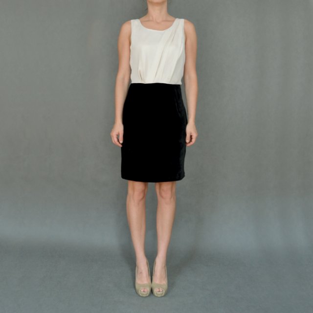 Bardzo stylowa sukienka w połączeniu weluru i delikatnej, górnej tkaniny. Dół dopasowany, ołówkowy. Góra z ukośnymi plisami. Na wiele okazji - od przyjęć, po randki i bieganinę do pracy - welur jest elastyczny, przez co bardzo wygodny.Polecam.