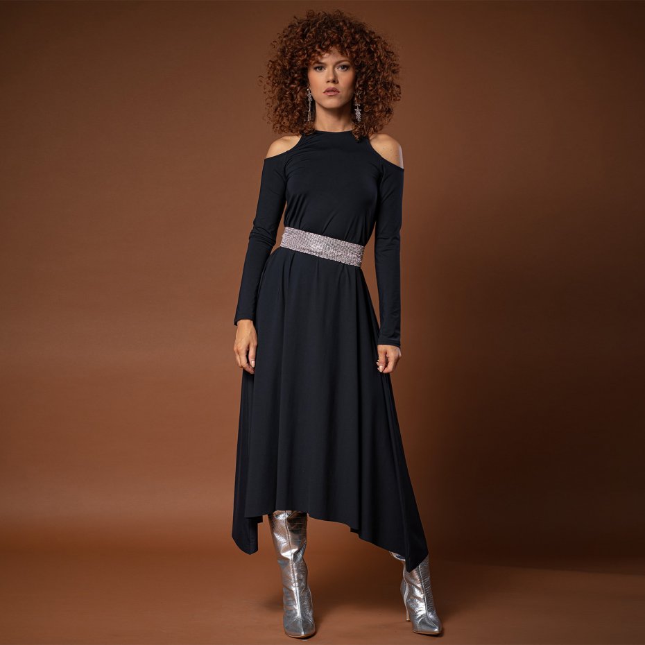 "Bellatrix" - sukienka o asymetrycznym kroju i lekko poluzowanym fasonie w okolicy talii i bioder. Idealna zarówno na codzień jak i na imprezy