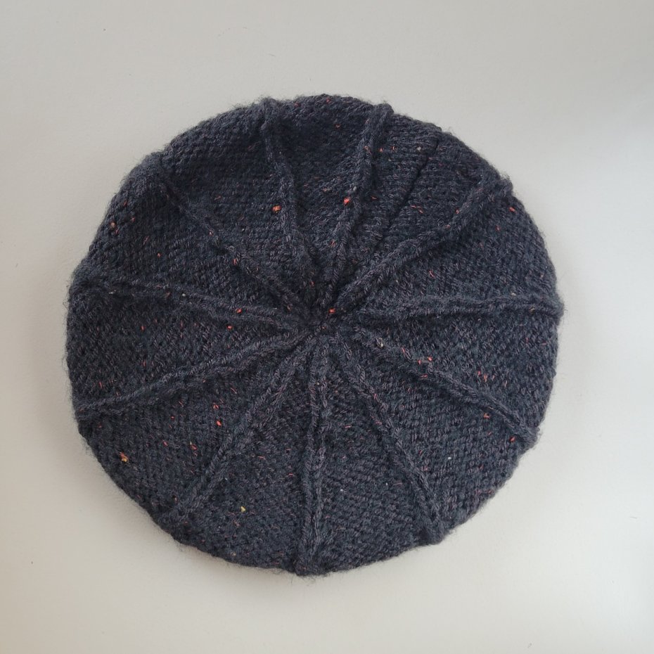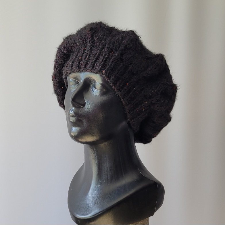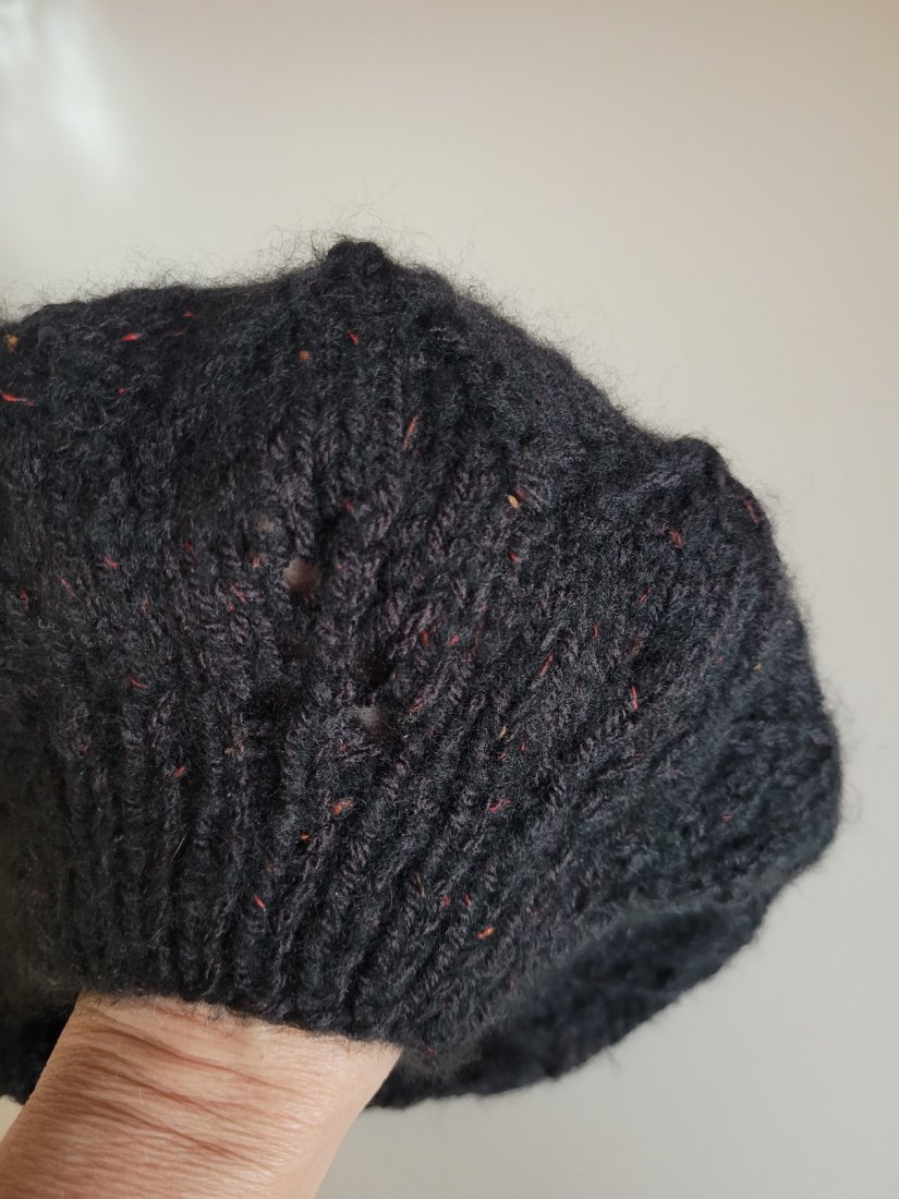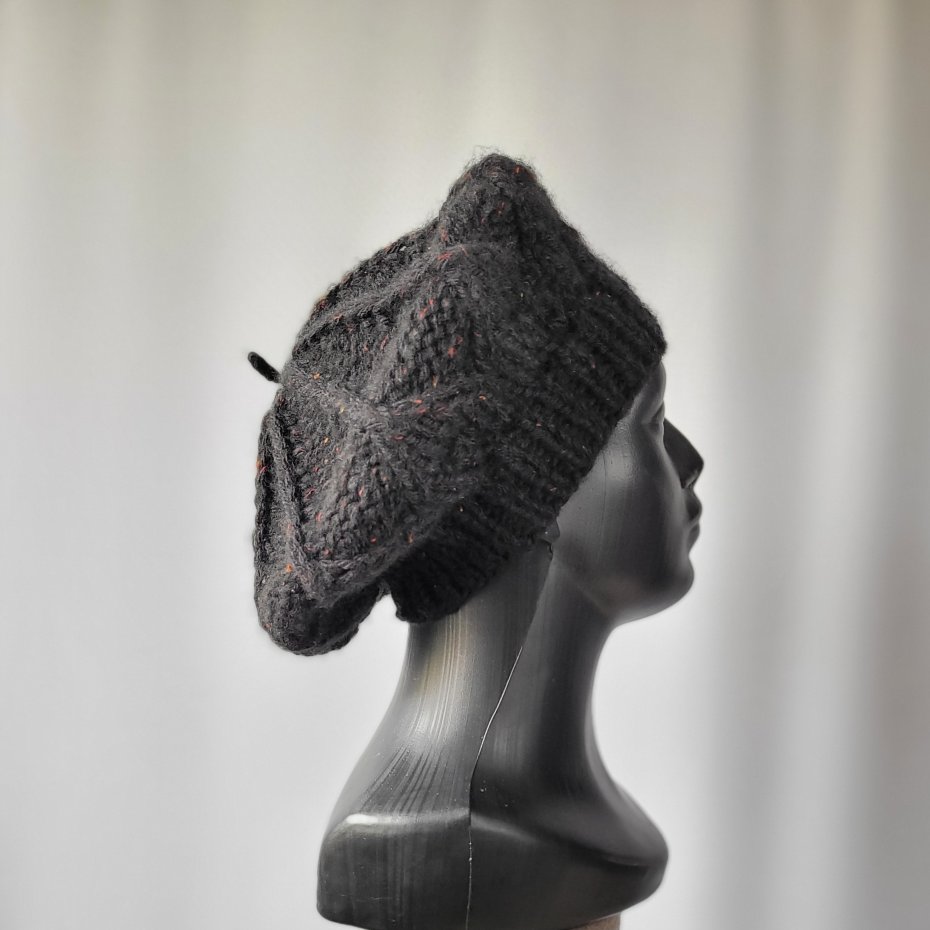 Ręcznie robiony beret z włóczki (mieszanka czarnego akrylu i fantazyjnego mohairu w "paproszki")