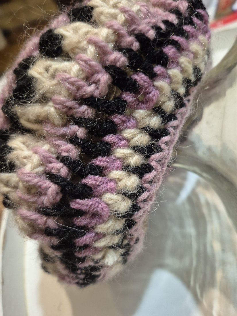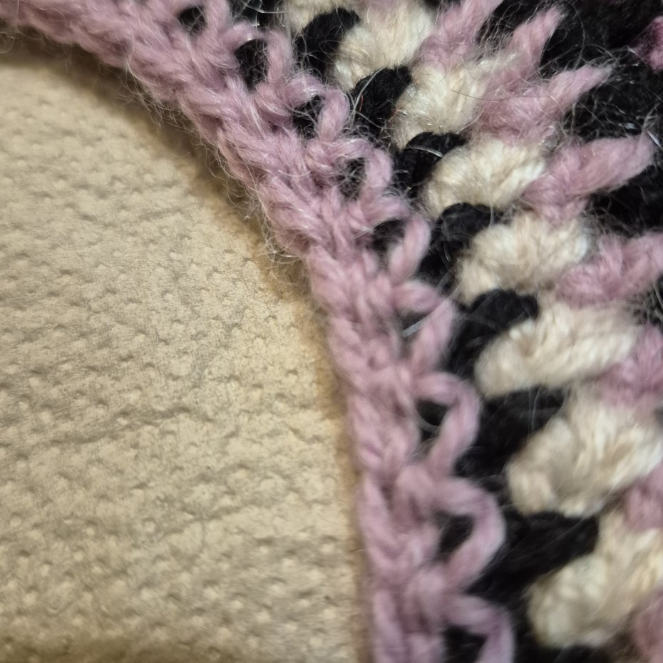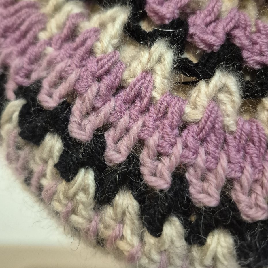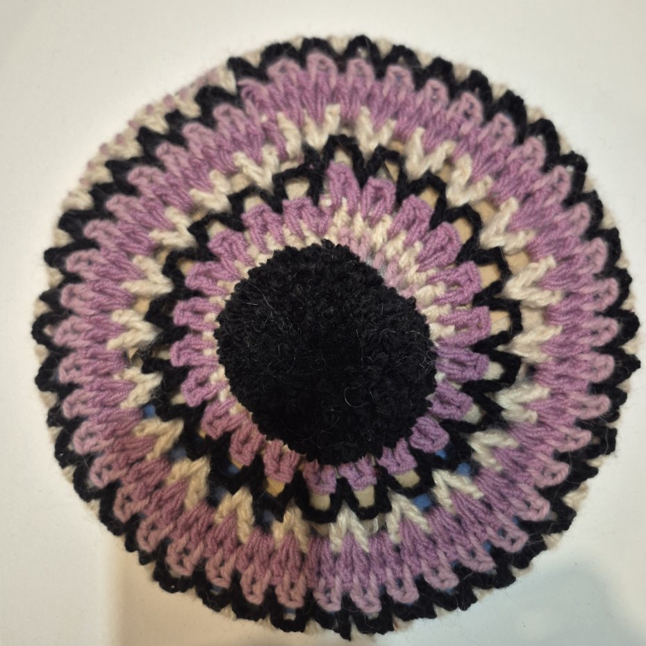 Kolorowy beret zrobiony ręcznie na szydełku. Średnica ok.27- 28 cm. Średnica pompona ok.8 cm. Wykonany z różnych kolorów włóczek