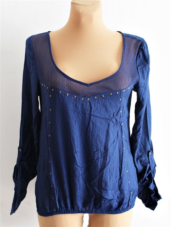 Granatowa z koralikami i ciekawie podpinanymi rękawami.