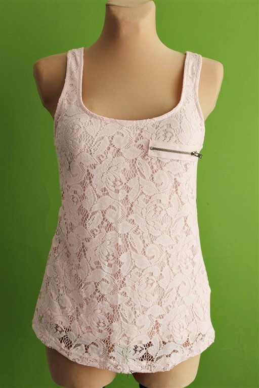 Kolor różowy, przód koronkowy, tył gładki. Z przodu efektowny ekspres.