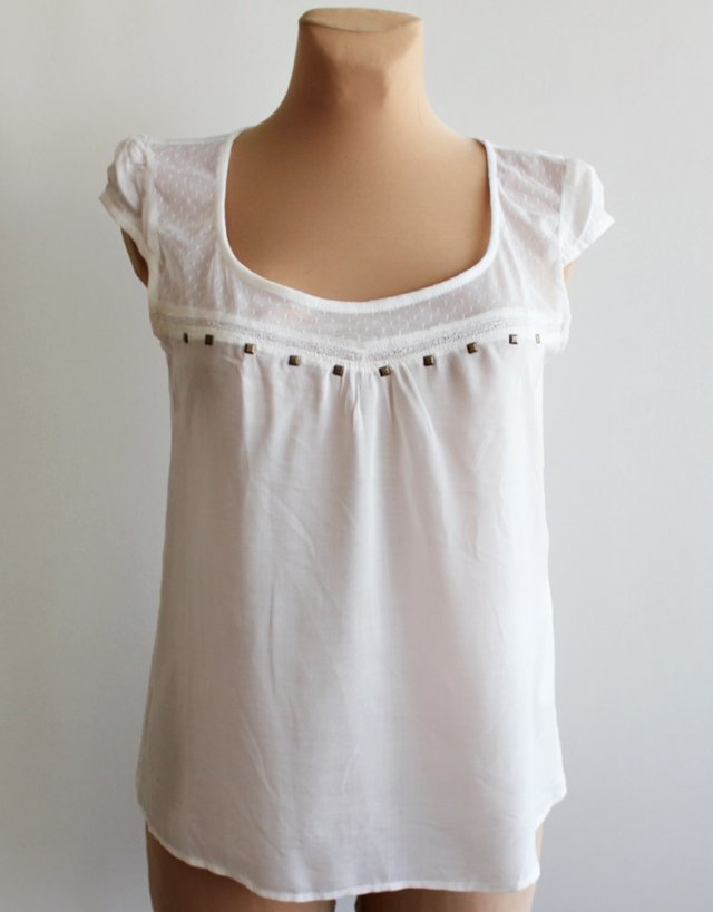 Delikatny kremowy odcień, zdobiona ćwiekami.