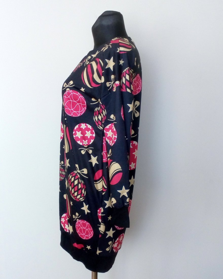Bluza z dzianiny dresowej ze świątecznymi motywami, kolor bazowy czarny, ściągacz u dołu i przy rękawach, rękawy obniżane