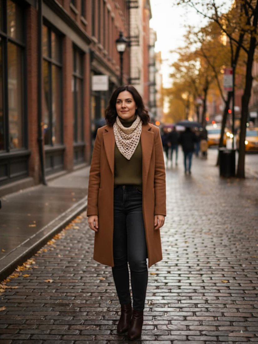 ✔apaszkę do płaszcza, kurtki lub swetra,