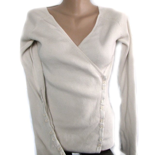 Beżowa bluzeczka firmy SOLAR, zakładana z asymetrycznym zapięciem na guziczki. Materiał dzianinowy. Wymiary na płasko: biust39 cm, talia 31 cm, biodra 36 cm. Długość bluzki mierzona przodem od ramienia 57 cm. Długość rękawa mierzona po wewnętrznej stronie 47 cm.