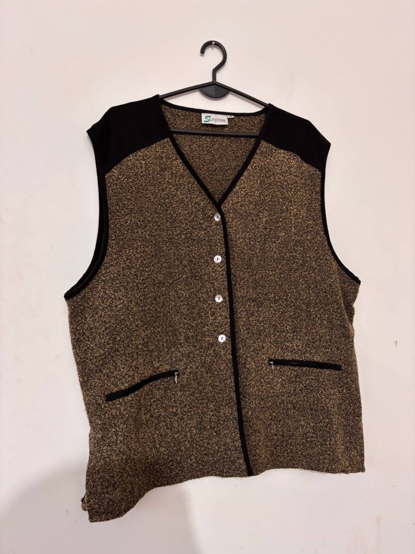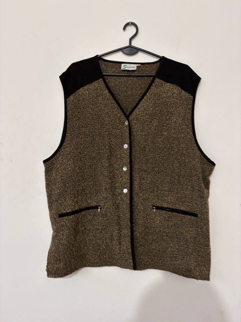 kamizelka, kamizelka damska, bezrękawnik, elegancka kamizelka, kamizelka we wzory, kamizelka beżowa, kamizelka czarna, kamizelka 48, duży rozmiar, plus size, moda damska, jesienna kamizelka, zimowa kamizelka, styl retro, styl klasyczny, casual, kieszenie na zamek, guzik, miękka tkanina, wygodna kamizelka, modna kamizelka, dłuższa kamizelka, vintage, klasyczna, lekka kamizelka, codzienna kamizelka, Surprise, kamizelka ciepła, warstwa, outwear, vest, women vest, sleeveless jacket, gilet, beige vest, black vest, textured vest, button vest, zip pockets, size 48, plus size vest, women's fashion, everyday vest, soft fabric, cozy vest, casual style, classic style, retro style, lightweight vest, warm vest, autumn vest, winter vest, patterned vest, elegant