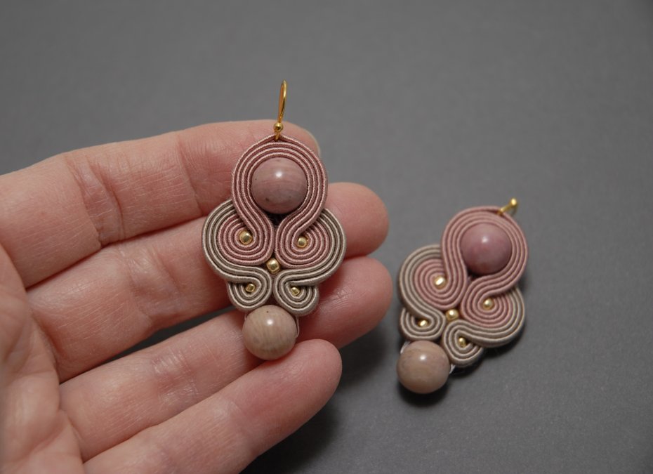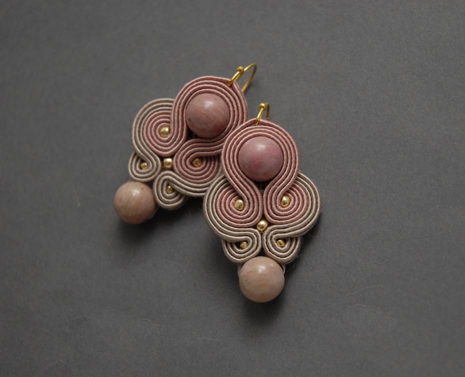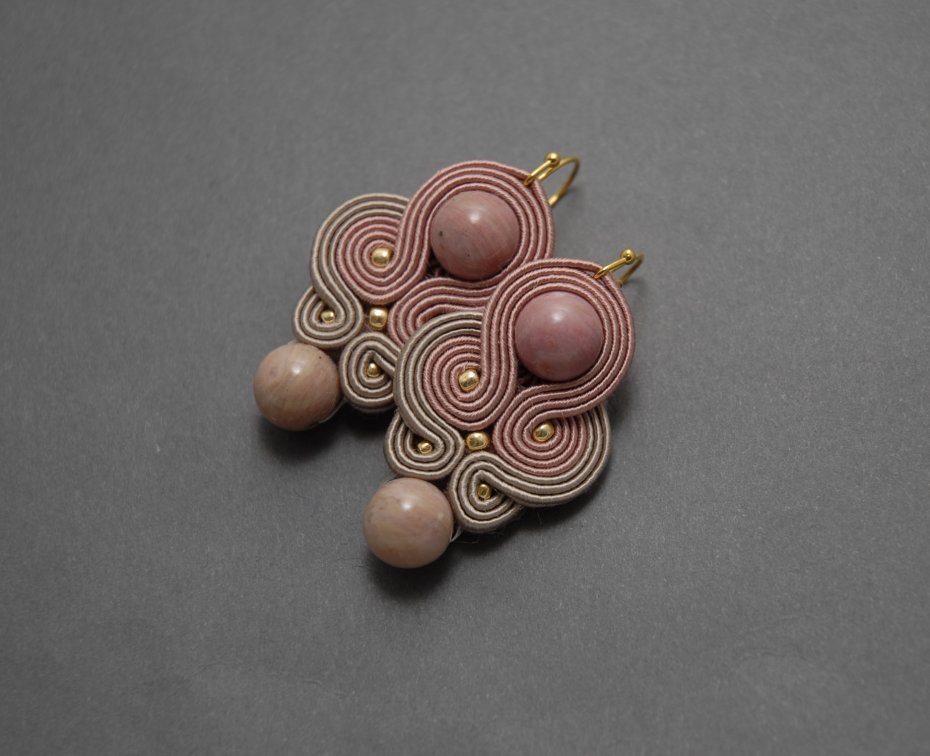 BEŻOWO-RÓŻOWE KLIPSY SUTASZ Z RODONITAMI