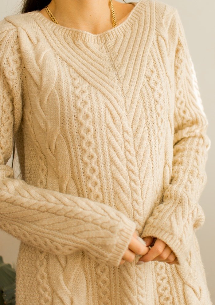 Tagi: #beżowy sweter, #sweter z warkoczami