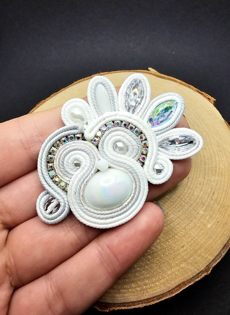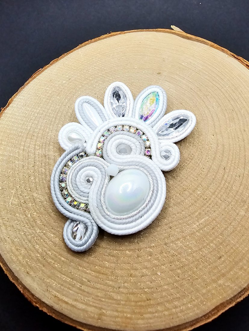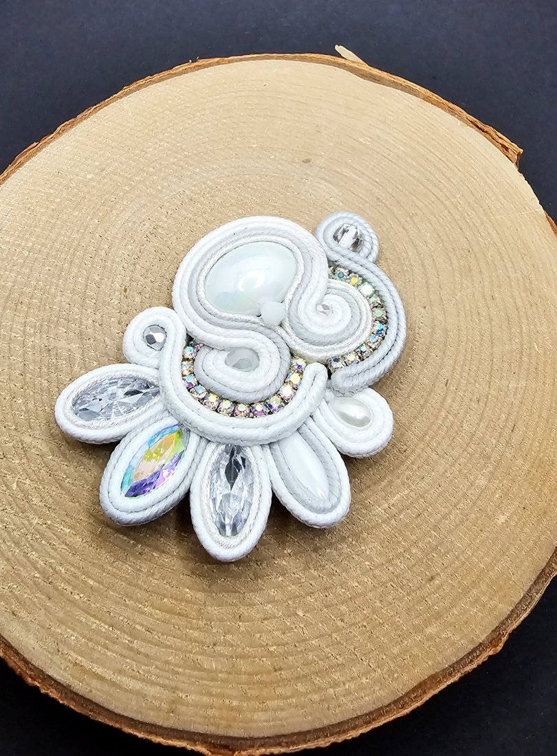 Biała broszka sutasz