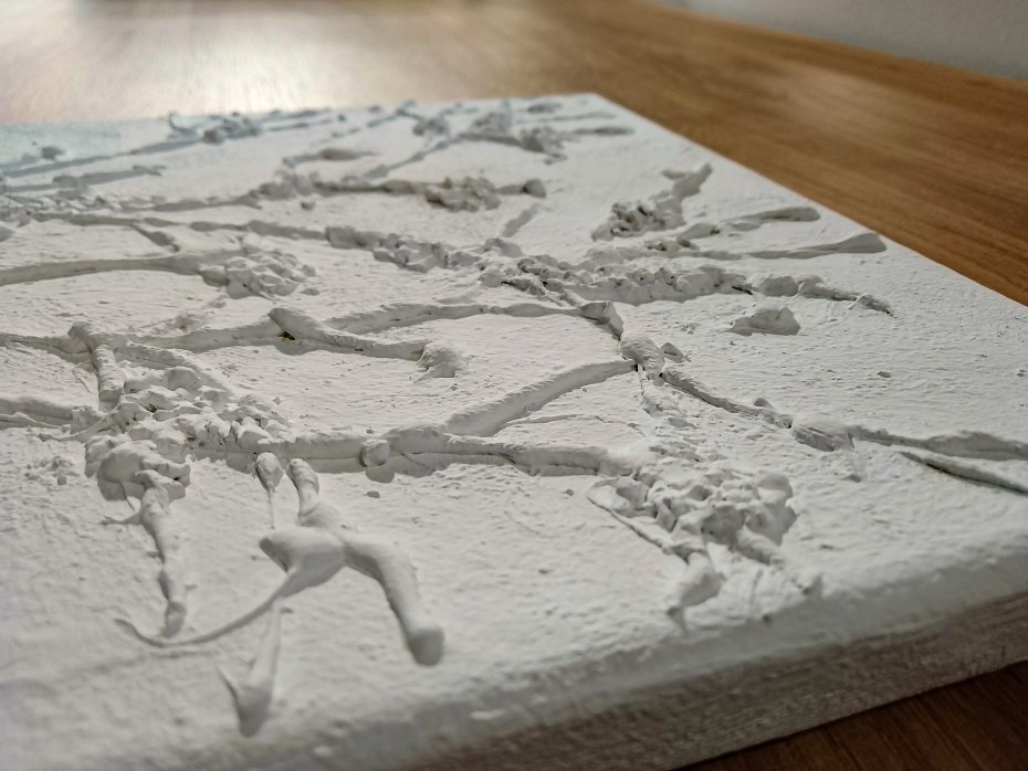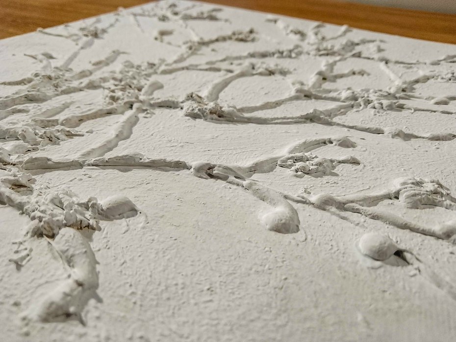 -Technika malarska: Malarstwo strukturalne z teksturą 3D z zastosowaniem kleju na gorąco oraz farb akrylowych