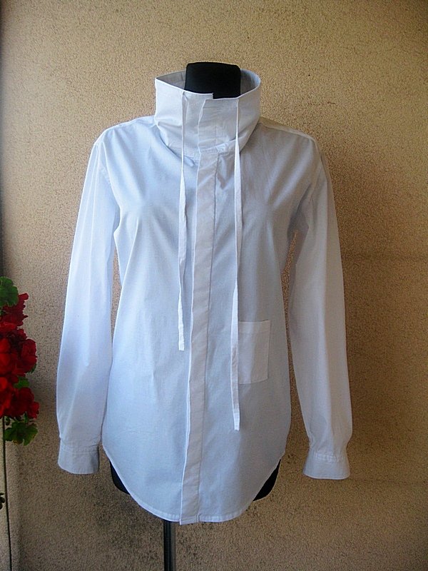 Koszula męska ekstrawaganckiej marki Army of me, która ma w swojej kolekcji niezwykle oryginalne ubrania męskie (odsyłam na ich stronę). Materiał 95% bawełna, 5% spandex. Myślę, że może jako damska naprawdę nieźle się prezentuje. Stan bardzo dobry (guziki kryte- jeden złamany) Rozmiar z metki S. Na manekinie o rozmiarze 38. Podaję wymiary mierzone na płasko;